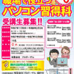 2025年5月15日 / 最終更新日時 : 2025年10月7日 proposal 求職者支援訓練 訓練生募集終了!! 職場で役立つパソコン習得科 パソコン未経験でも基本操作を学び、応用力を養うことができます。 「基礎から」「しっかり」「着実に」仕事に必要なスキルを身につけ、ビジネスソフトウエア(Word、Excel、PowerPoint […]