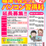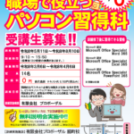 2025年5月15日 / 最終更新日時 : 2025年10月7日 proposal 求職者支援訓練 訓練生募集終了!! 職場で役立つパソコン習得科 パソコン未経験でも基本操作を学び、応用力を養うことができます。 「基礎から」「しっかり」「着実に」仕事に必要なスキルを身につけ、ビジネスソフトウエア(Word、Excel、PowerPoint […]